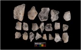 | Description / विवरण | There are n-20 of intact flake cores made up of Quartz. Some of them have bulge of percussion and some are flat flakes. |