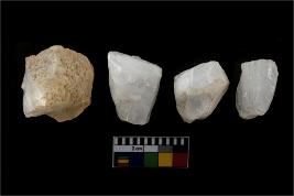 | Description / विवरण | There are n 4 Number of cores made up of Quartz. One of them is with impression of crested ridge flake. |