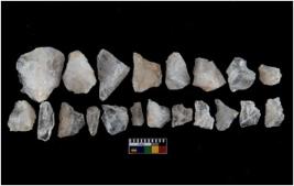 | Description / विवरण | There are n-20 of intact flake cores made up of Quartz. Some of them have bulge of percussion and some are flat flakes. |