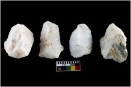 | Description / विवरण | There are n-4 of intact utilized flake cores made up of Quartz. Some of them have bulge of percussion and some are flat flakes. |