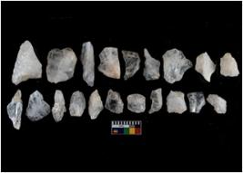 | Description / विवरण | There are n-20 of intact flake cores made up of Quartz. Some of them have bulge of percussion and some are flat flakes. |