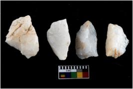 | Description / विवरण | There are n-4 of intact utilized flake cores made up of Quartz. Some of them have bulge of percussion and some are flat flakes. |