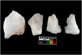| Description / विवरण | There are n-4 of intact utilized flake cores made up of Quartz. Some of them have bulge of percussion and some are flat flakes. |