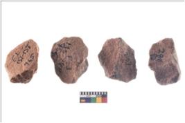 | Provenance / उद्गम/क्षेत्र | Bhimbetka, District-Raisen, BTK-1976, Trench-IIIF23, I7, L7, F2, F3, L- 4, Depth-146-150, 71-75, 151-155, 136-140, Artifact No.-337, 288, 965, 954, Date- 17 1 1976 |