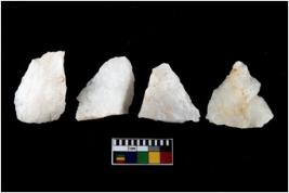 | Description / विवरण | There are n-4 of intact utilized flake cores made up of Quartz. Some of them have bulge of percussion and some are flat flakes. |