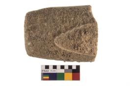 | Description / विवरण | A partially broken specimen of a oval shaped mueller stone with oval section. |
