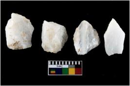 | Description / विवरण | There are n-4 of intact utilized flake cores made up of Quartz. Some of them have bulge of percussion and some are flat flakes. |