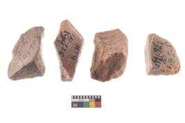 | Description / विवरण | Four worked utilised flakes. Many a times tapering and pointed at one end. |