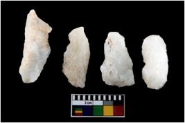| Description / विवरण | There are n-4 of intact utilized flake cores made up of Quartz. Some of them have bulge of percussion and some are flat flakes. |