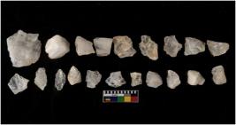 | Description / विवरण | There are n-20 of intact flake cores made up of Quartz. Some of them have bulge of percussion and some are flat flakes. |