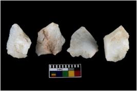 | Description / विवरण | There are n-4 of intact utilized flake cores made up of Quartz. Some of them have bulge of percussion and some are flat flakes. |