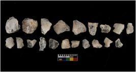 | Description / विवरण | There are n-20 of intact flake cores made up of Quartz. Some of them have bulge of percussion and some are flat flakes. |