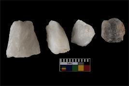 | Description / विवरण | There are n 4 Number of cores made up of Quartz.Two of them are having impressions of crested ridge flakes. |