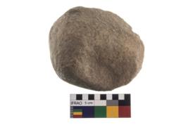 | Description / विवरण | A Hammer stone roughly rounded in shape with grounded edges. |