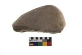 | Description / विवरण | A partially broken specimen of a oval shaped mueller stone with oval section. Prolonged used leads to a rounding and smoothening of the surface. |