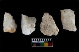 | Description / विवरण | There are n-4 of intact utilized flake cores made up of Quartz. Some of them have bulge of percussion and some are flat flakes. |