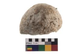 | Description / विवरण | A partially broken specimen of roughly round shaped hammer stone with battered periphery along with the circumference. |