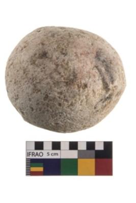 | Description / विवरण | A partially broken specimen of roughly round shaped hammer stone with battered periphery along with the circumference. |
