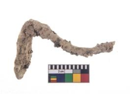 | Description / विवरण | The object is a Nail of material Iron. It is in broken condition. The object is totally corroded. It is flat-bodied nail. It has a curve shape at one end. |