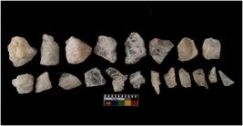 | Description / विवरण | There are n-20 of intact flake cores made up of Quartz. Some of them have bulge of percussion and some are flat flakes. |