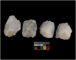 | Description / विवरण | There are n-4 of cores. All are made up of Quartz. All of them are intact fluted cores without any trace of crested ridge flakes. |