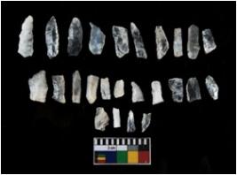 | Description / विवरण | There are 20 objects out of which 23 are made out of quartz and 2 are made out of chert. Out of the objects there are 13 blades and 7 debitage. |