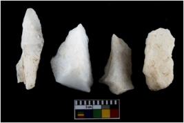 | Description / विवरण | There are n-4 of intact utilized flake cores made up of Quartz. Some of them have bulge of percussion and some are flat flakes. |