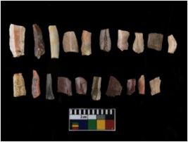 | Description / विवरण | There are 20 objects which are made out of chert. Out of the objects there are 7 blades and 13 debitage. |