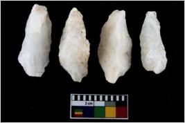| Description / विवरण | There are n-4 of intact utilized flake cores made up of Quartz. Some of them have bulge of percussion and some are flat flakes. |