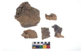 | Description / विवरण | The objects are pieces of lamp of material Iron. It is in broken condition. It consists roughly of a small shallow dish with traces of probably a rod-hold at a point along the periphery. The hold was useful either for lifting or for hanging. |