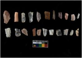 | Description / विवरण | There are 22 objects out of which 12 are made out of quartz and 10 are made out of chert. Out of the objects there are 5 blades and 17 debitage. |
