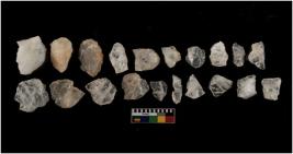 | Description / विवरण | There are n-20 of intact flake cores made up of Quartz. Some of them have bulge of percussion and some are flat flakes. |