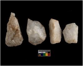 | Description / विवरण | There are n-4 of cores. All are made up of Quartz. All of them are intact fluted cores without any trace of crested ridge flakes. |