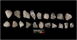 | Description / विवरण | There are n-20 of intact flake cores made up of Quartz. Some of them have bulge of percussion and some are flat flakes. |