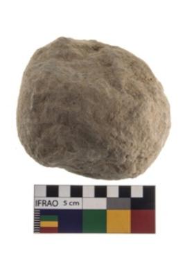 | Description / विवरण | A partially broken specimen of roughly round shaped hammer stone with battered periphery along with the circumference. |