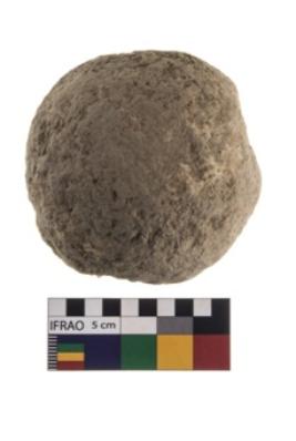 | Description / विवरण | A partially broken specimen of roughly round shaped hammer stone with battered periphery along with the circumference. |