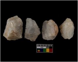 | Description / विवरण | There are n-4 of cores. All are made up of Quartz. All of them are intact fluted cores without any trace of crested ridge flakes. |