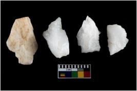 | Description / विवरण | There are n-4 of intact utilized flake cores made up of Quartz. Some of them have bulge of percussion and some are flat flakes. |