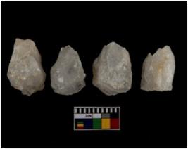 | Description / विवरण | There are n-4 of cores. All are made up of Quartz. All of them are intact fluted cores without any trace of crested ridge flakes. |