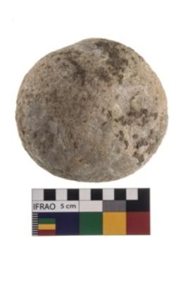 | Description / विवरण | A partially broken specimen of roughly round shaped hammer stone with battered periphery along with the circumference. |