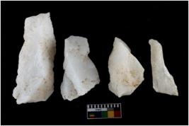 | Description / विवरण | There are n-4 of intact utilized flake cores made up of Quartz. Some of them have bulge of percussion and some are flat flakes. |
