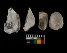 | Description / विवरण | There are n-4 of cores. All are made up of Quartz. All of them are intact fluted cores without any trace of crested ridge flakes. |