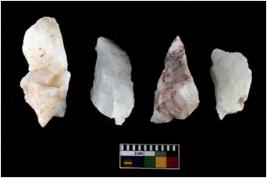 | Description / विवरण | There are n-4 of intact utilized flake cores made up of Quartz. Some of them have bulge of percussion and some are flat flakes. |