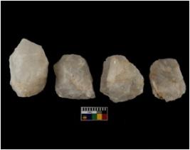 | Description / विवरण | There are n-4 of cores. All are made up of Quartz. All of them are intact fluted cores without any trace of crested ridge flakes. |