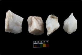 | Description / विवरण | There are n-4 of intact utilized flake cores made up of Quartz. Some of them have bulge of percussion and some are flat flakes. |