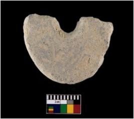 | Description / विवरण | A partially broken specimen of terracotta toy wheel. It is wheel-made with well-levigated clay. The perforation widens near the edges and narrows inside. It is relatively heavy. It is having rough surface and greyish in colour. It is coarse and well fired. A thin groove passing with the outer diameter edge. |