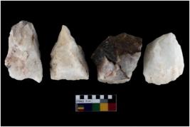 | Description / विवरण | There are n-4 of intact utilized flake cores made up of Quartz. Some of them have bulge of percussion and some are flat flakes. |