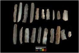 | Description / विवरण | 21 chalcedony blades with retouch all along on both sides. |