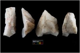 | Description / विवरण | There are n-4 of intact utilized flake cores made up of Quartz. Some of them have bulge of percussion and some are flat flakes. |