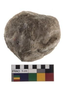 | Description / विवरण | A partially broken specimen of roughly round shaped hammer stone with battered periphery along with the circumference. |